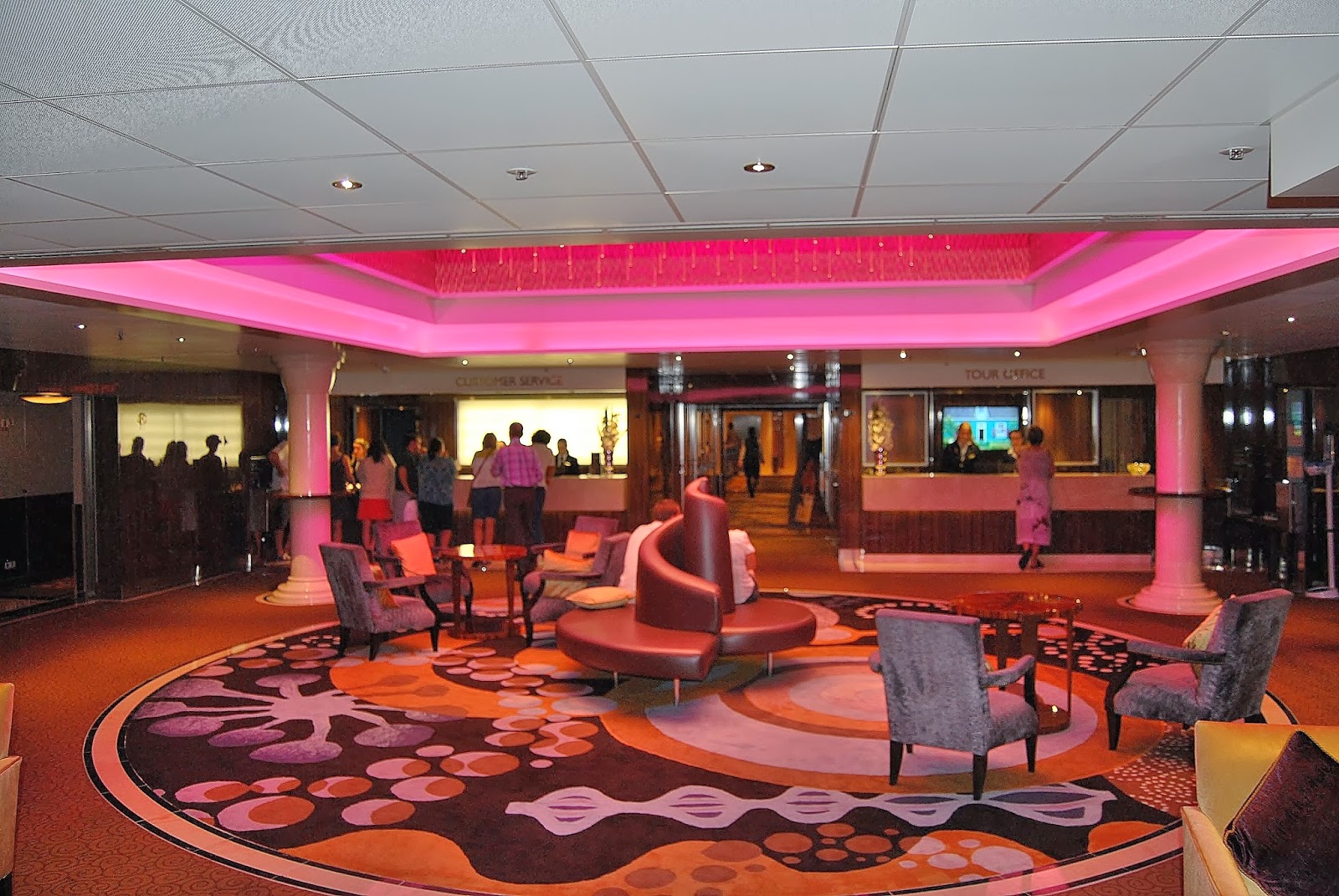 Pour faciliter, la vie des passagers, la compagnie Costa Croisières avait traité avec une société qui avait transformé un hangar sur les quais, afin d’y parquer les voitures. Mais, détail important, la société n’avait pas mis de panneaux, indiquant où il fallait tourner. Le port du Havre est le second port de France, je vous laisse imaginer les kilomètres de quais qu’il y a à parcourir. S’éloignant, peu à peu, il étant tant de faire demi-tour. En revenant sur nos pas, bingo ! Une petite pancarte indiquait la direction du navire et du parking, ouf ! On ne pouvait la voir qu’en venant dans un sens mais pas dans l’autre. Arrivé au parking, je ne suis pas tout seul, quelques voitures font déjà  la queue, transportant des passagers, prêts à monter à bord, comme moi. Une fois la voiture définitivement garée, un petit van  attend pour conduire les passagers au pied du bateau. Enfin, je retrouve ce bon vieux Costa Romantica… Euh pardon ! NeoRomantica. Car, entre la dernière fois où je suis monté à bord en 1999 et août 2012, ce cher navire a subi de multiples transformations. A l’origine, il fut construit en 1993 en Italie, près de Venise, il était le jumeau du Costa Classica, construit deux ans auparavant, en 1991. Il mesure 215 mètres de long et peut embarquer jusqu’à 1950 passagers. Exit la discothèque circulaire à l’avant qui permettait de contempler la mer à 360° et bonjour les 3 nouveaux ponts qui abritent désormais les nouvelles suites à balcon et cabines Samsara (programme de bien être qui vous permet d’accéder au spa du navire) Quelques cabines à balcon ont également poussé le long de la coque et la terrasse du self-service est remplacé par un toit en dur. Esthétiquement, je le trouve nettement moins joli qu’avant.