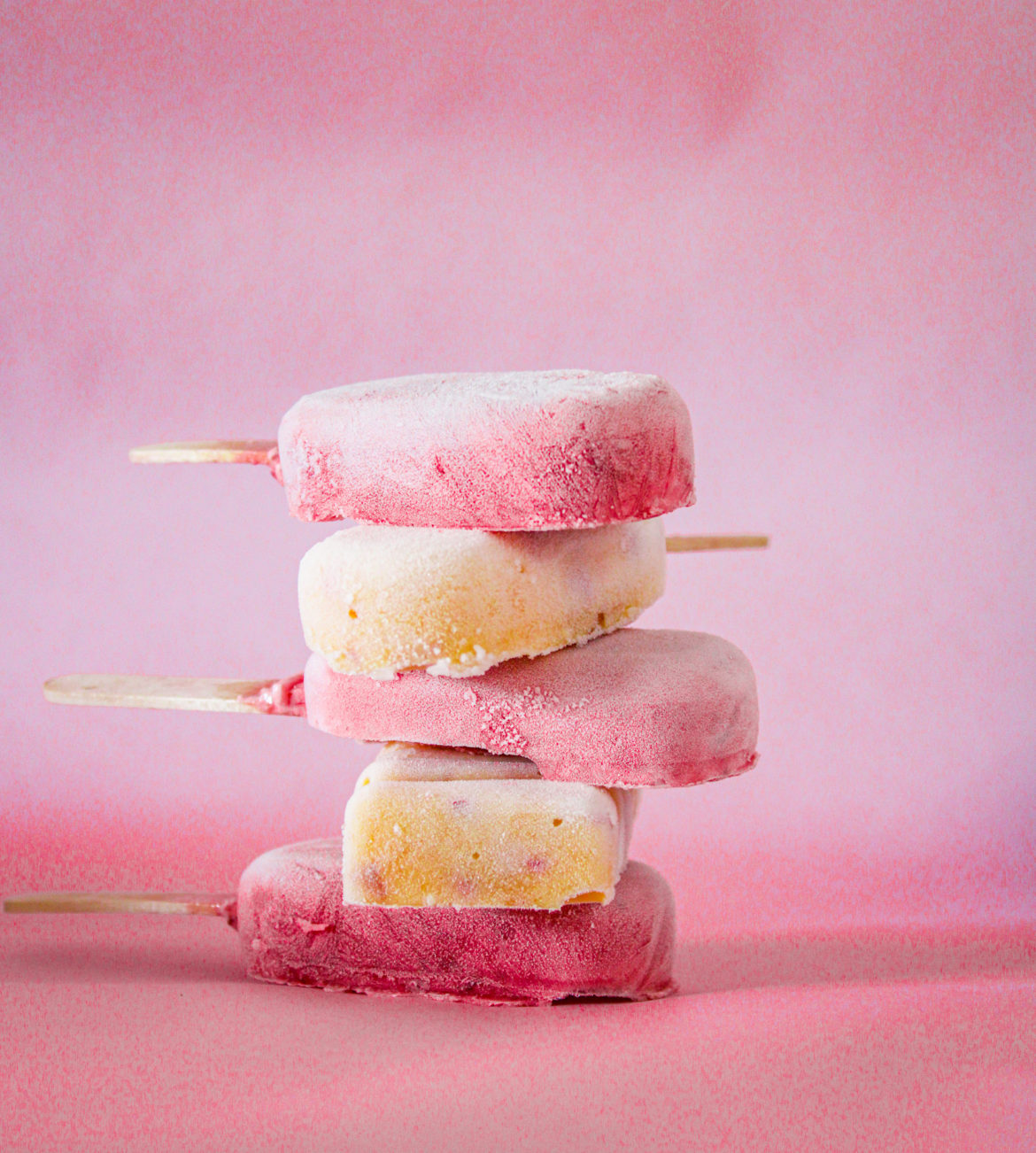 Si vous avez opté pour des fruits surgelés, vous pouvez manger la glace immédiatement sinon vous mettez dans des moules à glace. J’ai des moules en silicones car c’est plus facile à démouler, j’ai acheté les miens à Sosterne Grene pour moins de 5€, sinon vous pouvez en trouver à Hema ou Ikea.