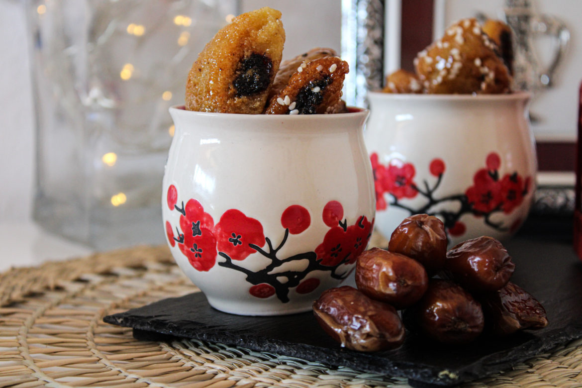 – Laisser refroidir le temps de préparer la dernière étape : L’enrobage des makrouds au miel et aux graines de sésame (facultatif)